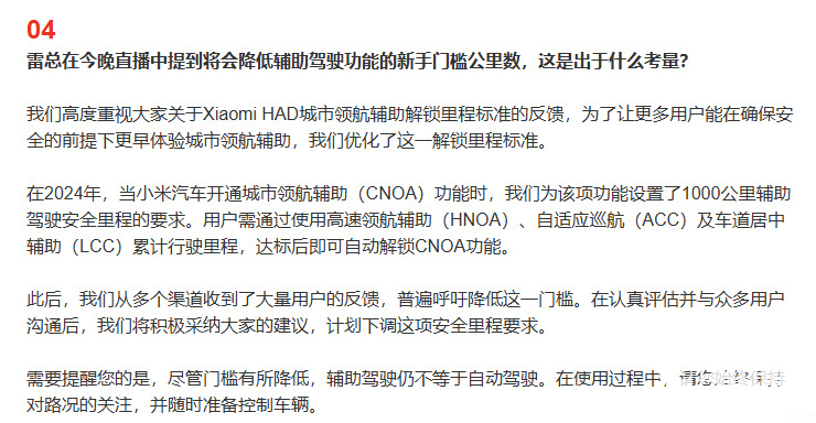 近年来出现了数起因驾驶员过度依赖辅助功能最终导致严重交通事故的事件,这意味着用户普遍存在“系统能代替人”的认知误区,这也成为小米反复警示、强化安全宣传的重要原因。