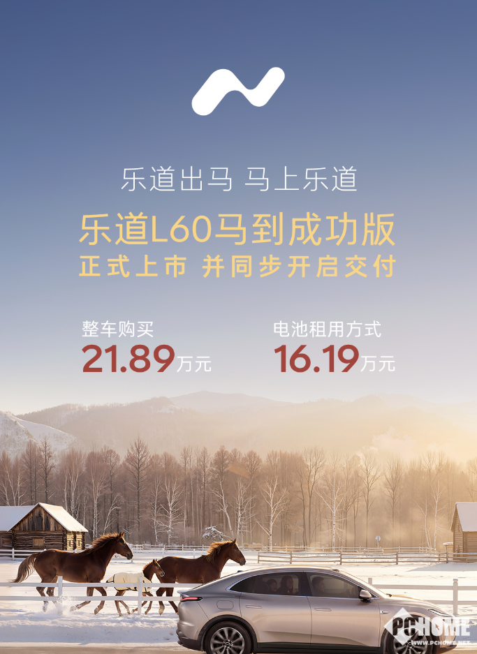2026年1月16日,乐道汽车官方微博宣布,乐道L60马到成功版正式上市,整车购买21.89万元,电池租用方式购买16.19万元。