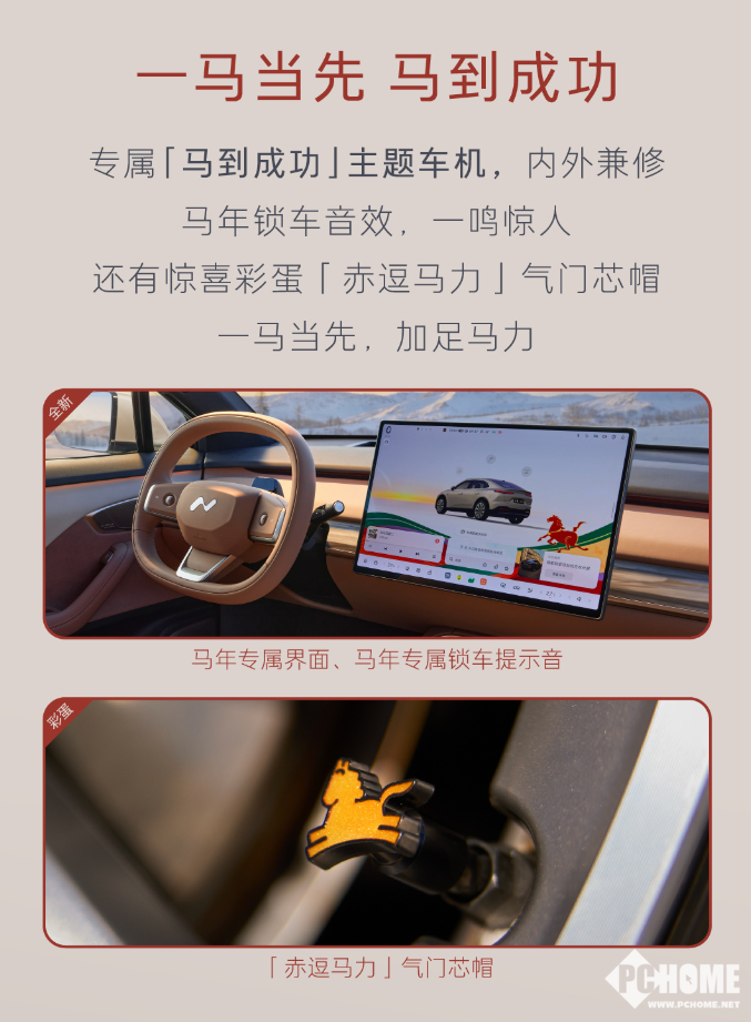 据了解,该车搭载“曙光金”专属车漆与20英寸光影优雅亮银轮圈,配备“马到成功”主题豪华内饰,采用棕米双拼Nappa真皮、头枕刺绣、专属门槛饰条,灵感源自“马踏飞燕”,新增马年专属车机界面、锁车音效及“赤逗马力”气门芯帽等彩蛋配置。乐道L60马到成功版基于后驱60kWh版本打造,CLTC续航530km,支持全域900V高压架构与快速换电,同名,延续基础版“能效之王”、“空间之王”优势,二排腿部空间达160mm,满足“五人五箱”家庭出行需求。
