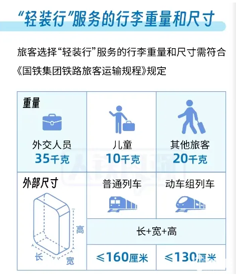 在2025年6月底“轻装行”已率先在北京西、上海虹桥、广州南等19个车站进行了试点,积累了良好口碑。
