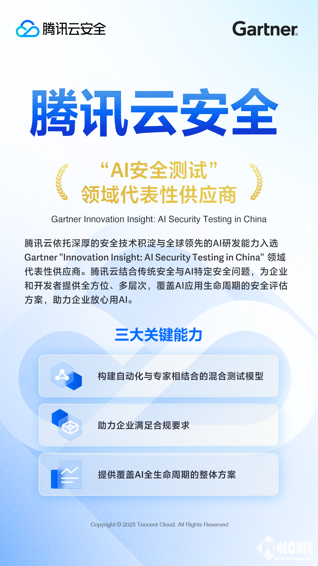 2026年1月19日,腾讯安全官方账号发布消息,腾讯云入选Gartner AI安全测试领域代表性供应商。