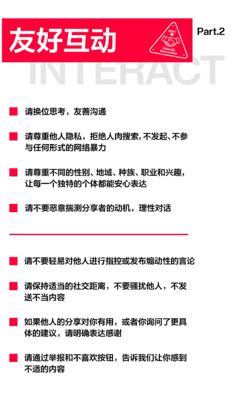 2026年1月19日,小红书正式发布《社区公约2.0》,围绕“真诚分享,友好互动”的社区价值观,新增了“反对制造对立”等多项倡导,为用户及各类社区参与者划定行为边界,守护清朗网络空间。