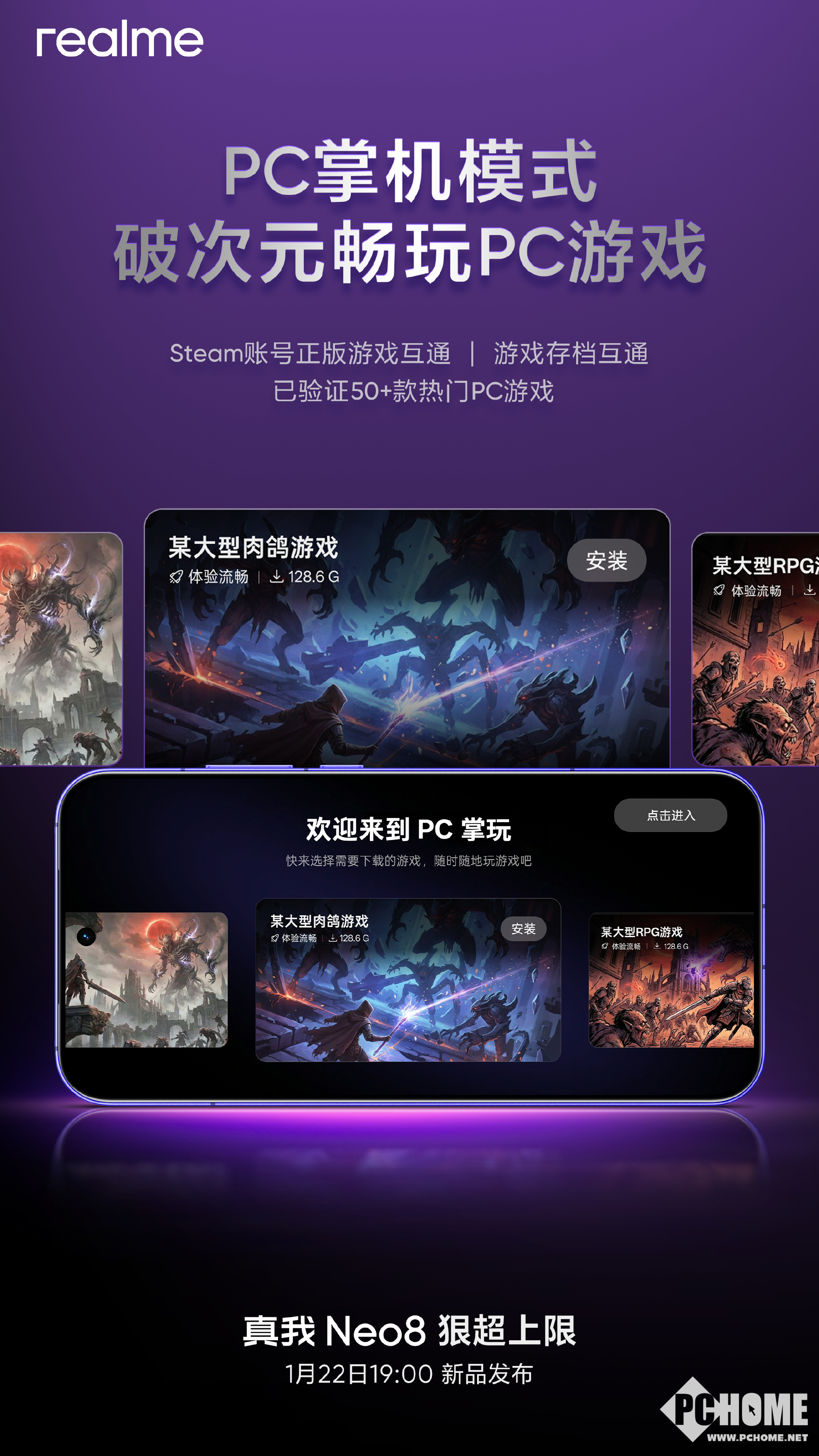 2026年1月20日,真我手机官方账号发布消息,真我Neo8全新PC掌机模式正式亮相。