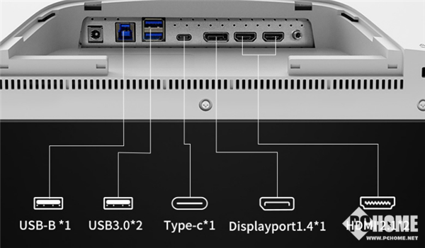 接口方面,PG27P5U支持1个USB-B、2个USB 3.0、1个USB-C,视频支持2个HDMI 2.1及1个DP 1.4,还支持15W反向充电。
