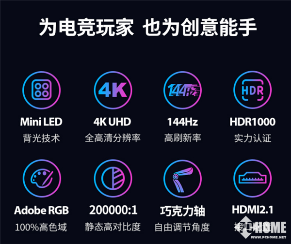 HKC发布了一款电竞显示器PG27P5U,这是旗下首次采用了mini LED屏,采用直下式背光成像技术。HKC PG27P5U显示器拥有27寸4K分辨率,支持144Hz刷新率、1ms响应时间,还有FreeSync加持,价格高达14999元,不过首发1元折抵5000元,到手9999元。