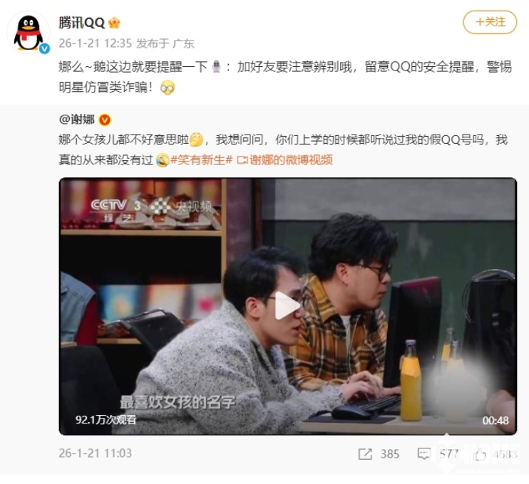2026年1月21日消息,谢娜在宣传节目《笑有新生》时发布视频,主动提及学生时代流传的假QQ号现象。