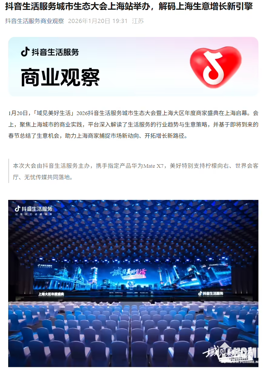 在1月20日召开的抖音生活服务城市生态大会上,平台明确提出将推进“线上+线下全域经营”的核心主张,帮助商家打通“线上种草-线下体验-线上复购与分享”的全链路消费闭环。