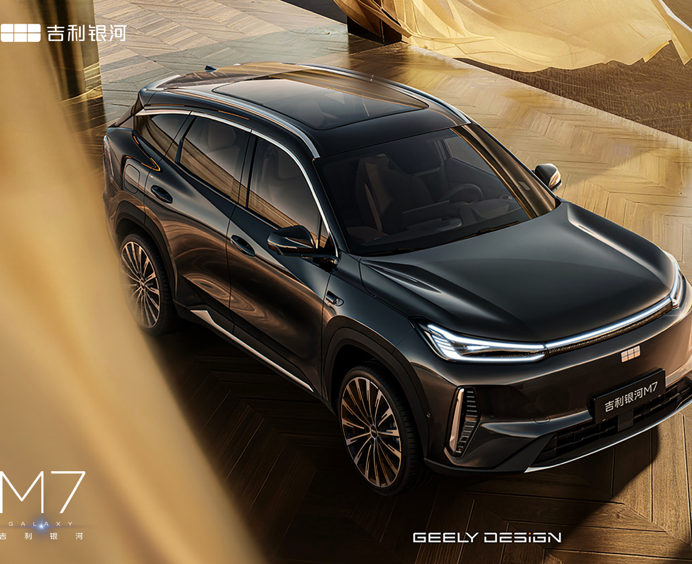 吉利银河官方微博今日发布吉利银河M7官图。新车定位吉利银河M系列首款中级电混SUV,预计今年一季度正式上市。