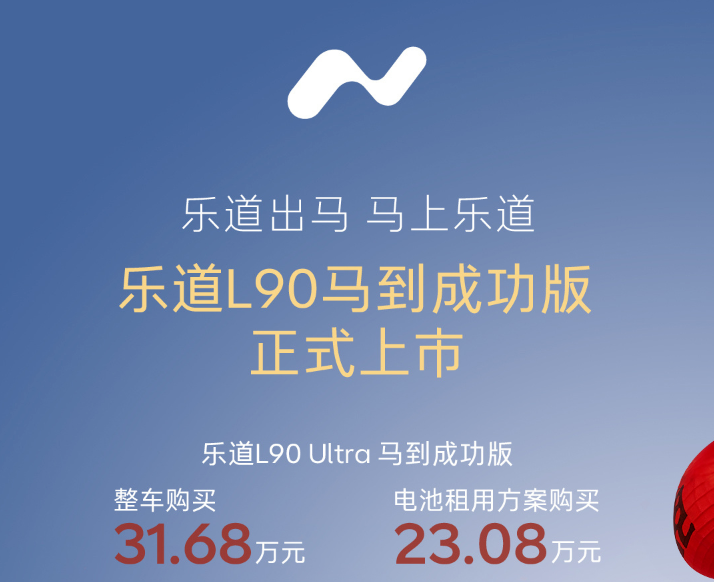 2026年1月23日,乐道L90新推出的“马到成功版”今日上市,29.68万元整车起售,21.08万元租电起售。