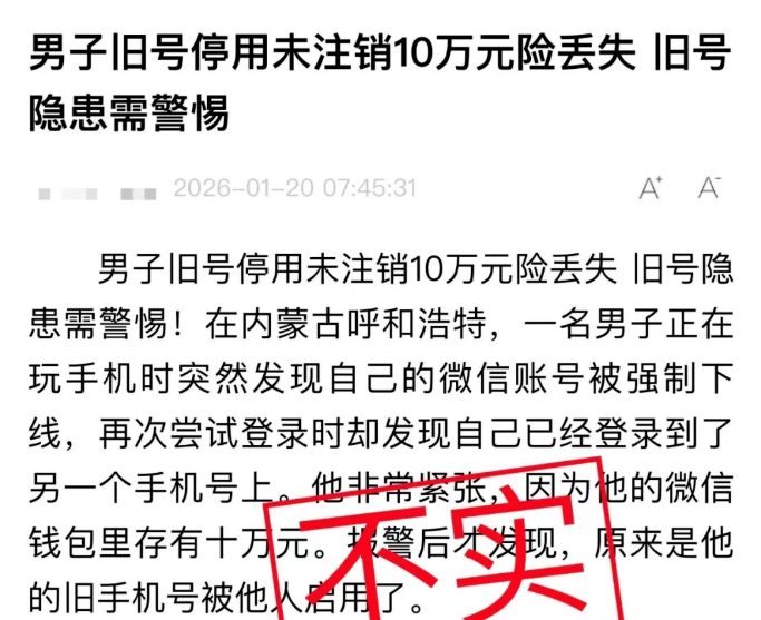 2026年1月23日,微信官方公众号“谣言过滤器”对于“一男子停用手机号后未解绑微信,被别人登上了自己微信”一事进行了辟谣。