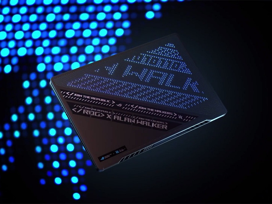 ROG为幻14 Alan Walker典藏版增加了不少个性化的设计,加上Alan Walker的参与,调配了许多独一无二的色调,其AniMe Matrix光显矩阵屏可以由普通白色变为了独特的电光色。