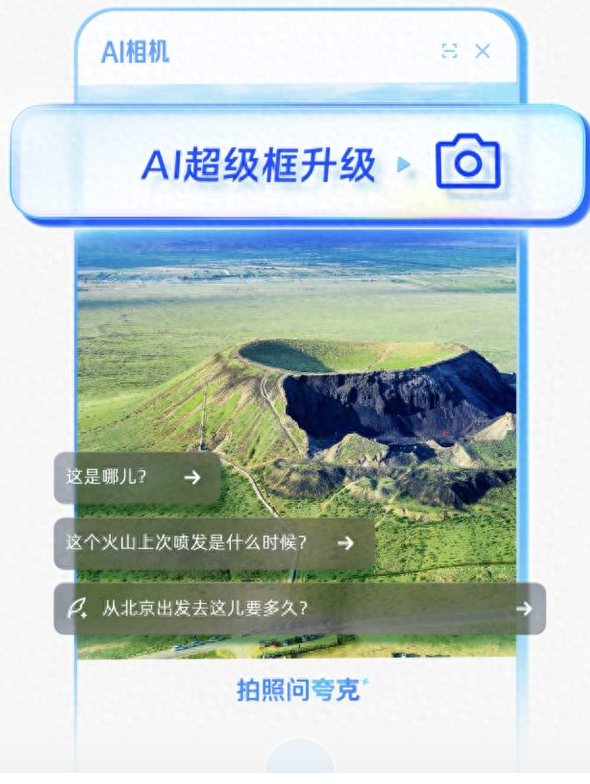 2025年4月27日,夸克AI超级框上线全新AI相机的新功能即“拍照问夸克”,进一步帮助用户回答关于世界的问题,缩短时间,提升效率。