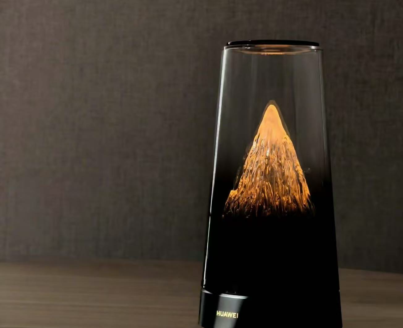 2025年10月15日,华为余承东在个人社交媒体发布神秘新品图,配文“猜猜这是啥?日照金山”,瞬间引爆热议。图片中产品采用透明上盖设计,内部呈现金色山体光影,搭配黑色底座与华为标识,“日照金山”的视觉意象极具辨识度。