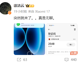 2025年12月3日消息,于12月2日,小米集团战略市场部副总经理徐洁云、汽车副总裁李肖爽等多名高管在微博发文表示,遭到了短信轰炸,数分钟内收到了数十条验证码短信。