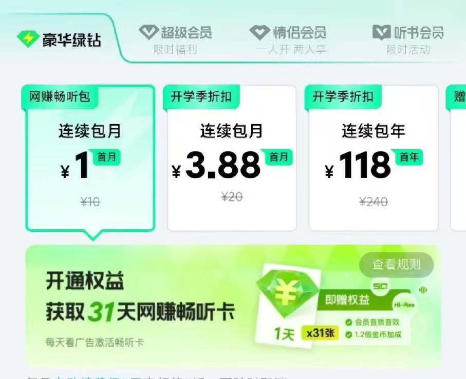 近日,腾讯旗下QQ音乐推出新型“网赚畅听包”会员服务,该服务连续包月首月1元、后续每月10元,但要求会员每日观看至少4则广告(每则不少于5秒)以换取全天听歌权益。