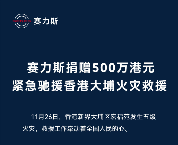 11月27日,赛力斯集团副总裁康波今日宣布,赛力斯集团捐赠500万港元紧急驰援香港大埔火灾救援。该笔捐款将专项用于受灾群众医疗救助、临时生活安置及后续灾后重建等关键环节,为救援工作注入及时力量。