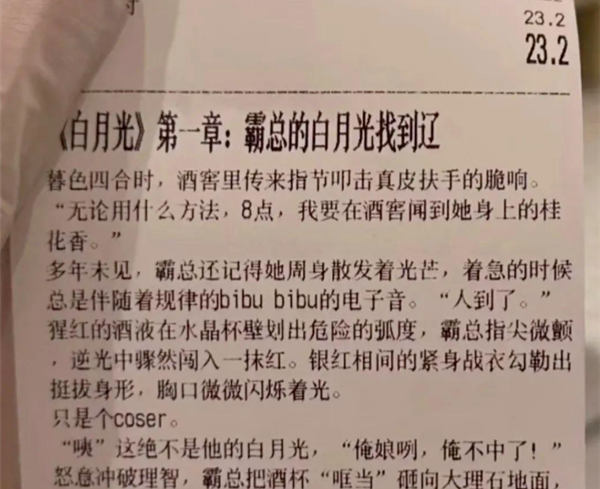近日,济南连锁奶茶品牌茉莉奶白因在外卖小票上印刷原创霸总小说《白月光》片段引发关注。该品牌采用连载形式更新内容,每张小票约100字,消费者需要通过多次购买才能连续阅读。