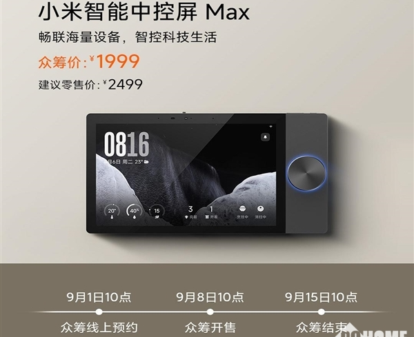 近日,小米在有品平台上线了首款官方大屏幕中框产品“小米智能中控屏Max”。该设备众筹价为1999元,建议零售价2499元,众筹周期自9月8日10时至9月15日10时。