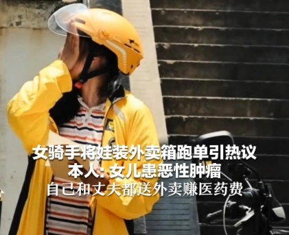 近日,安徽亳州一位女骑手带着患癌女儿送外卖的视频引发网友关注,视频中,近40度的高温下,女骑手带着女儿送餐,女儿只能藏身于电动车脚蹬中间的外卖箱中。7月20日,骑手朱女士发布视频回应称,感谢广大网友的帮助和鼓励,谢谢政府和区政府的帮助和探访,谢谢外卖平台的工作人员和骑手对家里的帮助。