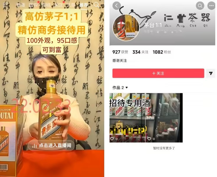 2025年11月20日消息,近日,抖音在日常治理中发现,部分黑产账号通过发布茅台酒特写、在直播中展示“高仿茅子货源”等多种方式,吸引目标受众去站外进行违规交易。