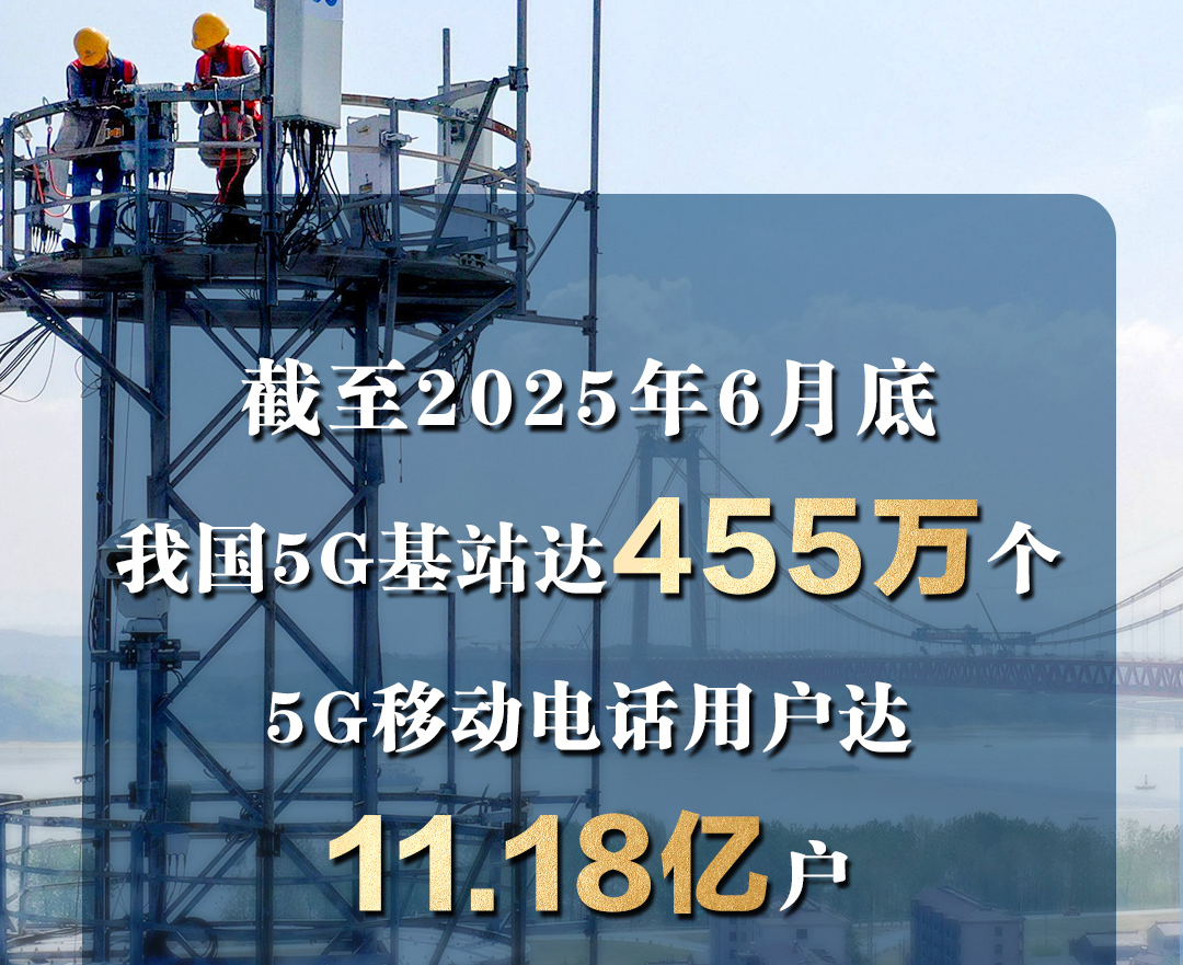 截至今年6月底,5G基站总数达到455万个,5G移动电话用户达11.18亿户,用户普及率超79%。