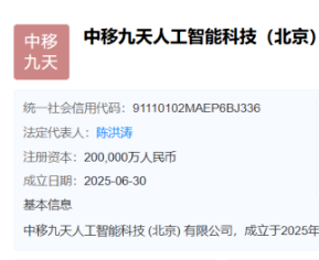 7月3日消息,近日,中国移动成立了一家人工领域的新公司中移九天人工智能科技(北京)有限公司。