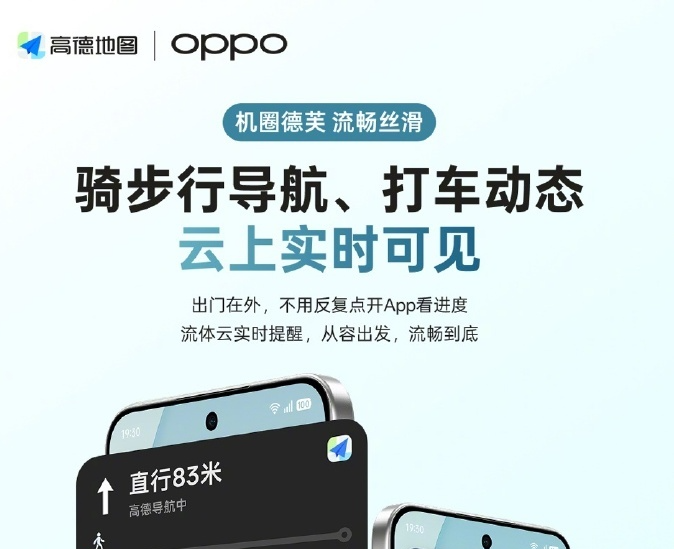 今日,高德地图官方发文,宣布其App上线OPPO ColorOS系统的“流体云通知”。可不用打开APP即可得知打车状态以及导航距离等。