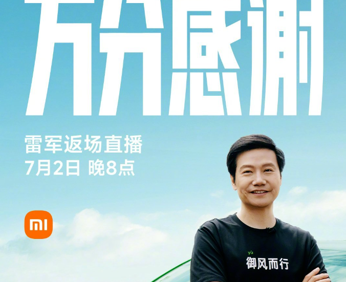 6月30日消息,小米创办人,董事长兼CEO雷军发文称,小米YU7发布以来,媒体和用户朋友们在试驾后给出了很多好评,锁单也远超预期,将于7月2日晚8点做一场直播,集中回答大家关心的一些问题。