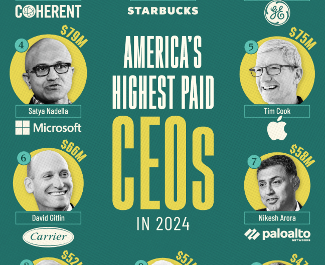 2025年6月6日消息,国外数据网站VISUAL CAPITALIST发布了“2024年美国薪酬最高的CEO排名榜单(仅限年收入超过10亿美元的公司)”,薪酬中位数高达1680万美元(约合人民币1.2亿元)。星巴克CEO布莱恩·尼科尔、微软CEO萨蒂亚·纳德拉、苹果CEO蒂姆·库克均榜上有名。