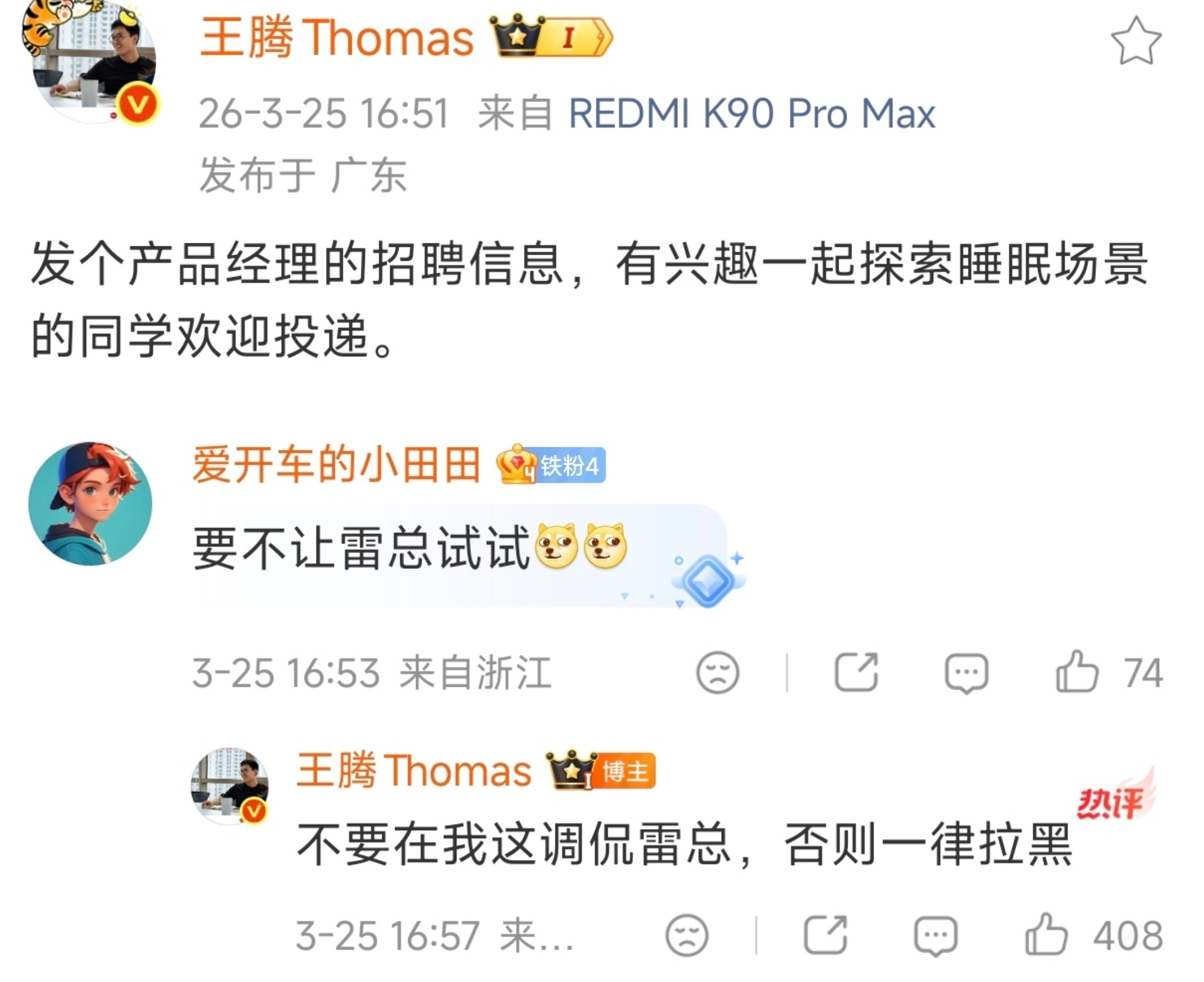PChome 3月26日消息,昨日,王腾以“今日宜休科技公司创始人”身份发布产品经理招聘信息。