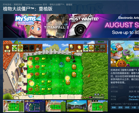 近日,EA宣布旗下经典塔防游戏《植物大战僵尸》的高清重制版本《植物大战僵尸:重植版》将于2025年10月23日正式发售,该作在中国大陆地区的PC售价为98元。