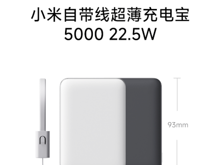 9月8日,小米自带线超薄充电宝5000mAh 22.5W开启全渠道发售,售价149元。这款新品主打极致轻薄设计,尺寸为93mm×64.3mm,厚度11.8mm,重量110g,采用微弧金属中框,小巧轻便单手可握。