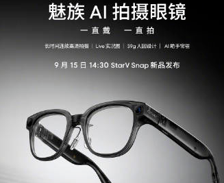 9月9日,魅族官方在微博发文,正式预热全新AI拍摄眼镜StarV Snap,这款定位“补全魅族智能眼镜生态”的新品将于9月15日14:30,在魅族22旗舰手机暨Flyme AIOS生态发布会中与旗舰手机同场发布。