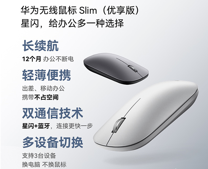 8月24日,华为无线鼠标Slim青春版星闪款正式开售,售价99元。该产品搭载华为星闪技术,提供银色、灰色两种配色选择。
