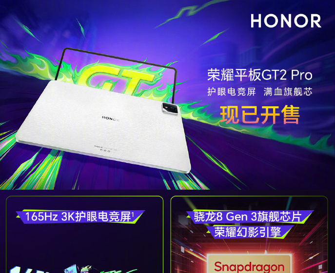 7月28日,荣耀平板GT2 Pro今日开售,售价2499元起,国补优惠价为2124.15 元起。