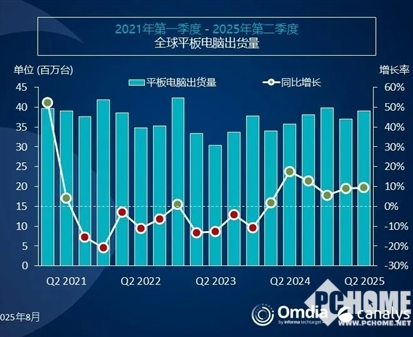 8月5日,市场调查机构Canalys今日发布博文,报告称2025年第2季度全球平板电脑出货量达到3900万台,同比增长9%、环比增长5%。