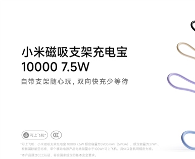 8月6日,小米宣布其新款磁吸支架充电宝正式上线小米商城,产品容量为10000mAh,目前已开放预约,定价为169元。该产品集成有线和无线充电功能,配备支架及多项安全保护设计。