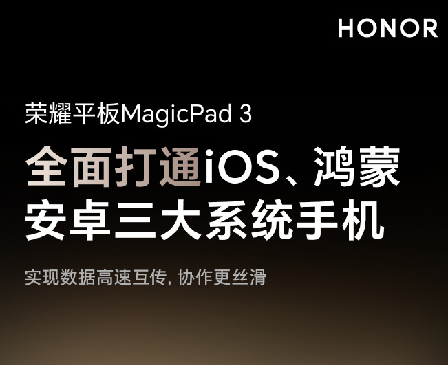 6月26日,荣耀官方发文将于7月2日发布荣耀MagicPad 3平板,并且透露该平板将首次实现iOS、鸿蒙、安卓三系统手机互联分享。