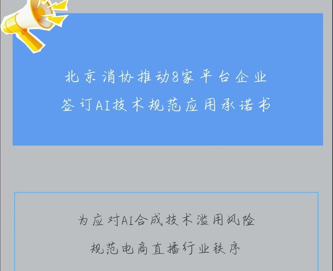 2025年12月4日,北京消协推动8家平台企业签订AI技术规范应用承诺书。