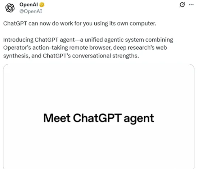 7月18日消息,OpenAI进行了技术直播,发布了ChatGPT Agent。