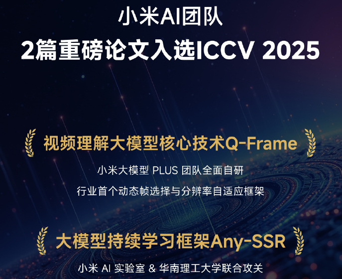 7月8日,小米集团副总裁、技术委员会主席屈恒发文表示,小米AI团队有2篇重磅论文入选计算机视觉国际大会ICCV 2025,获得全球顶级学术大会认可。