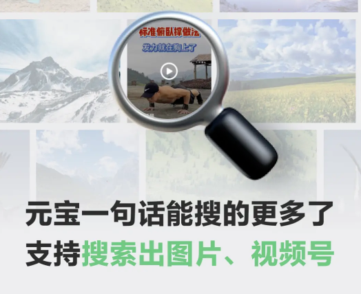 7月4日消息,腾讯元宝搜索能力升级,回答结果支持呈现图片与视频号内容。