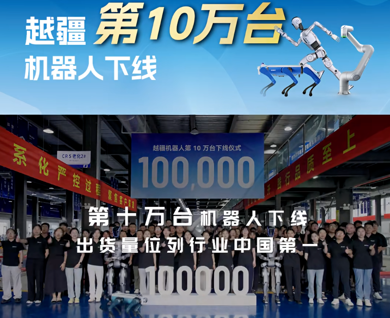 8月27日,越疆全球协作机器人生产基地近日迎来第10万台机器人成功下线。这一里程碑事件,标志着越疆成为国内首家出货量突破10万台的机器人企业。