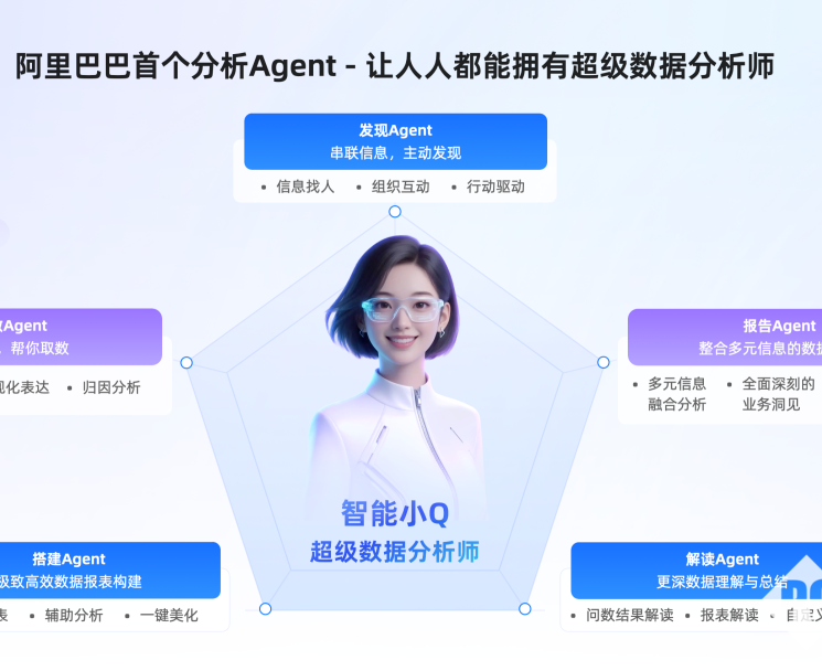 8月28日,阿里巴巴旗下瓴羊发布首个数据分析Agent,这一创新成果让Quick BI中的“智能小 Q”摇身一变,升级成为由问数、解读和报告三大核心Agent组成的“超级数据分析师”。