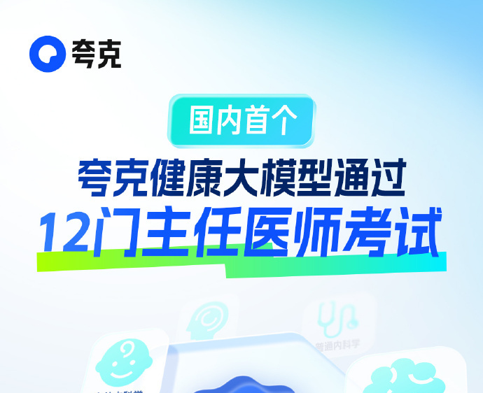 7月23日,夸克今日官方宣布,夸克健康大模型通过了12门主任医师职称考试,这是国内首个完成这一挑战的大模型。这是继 5 月通过副主任医师职称考试后,夸克健康大模型能力的又一次跃升。