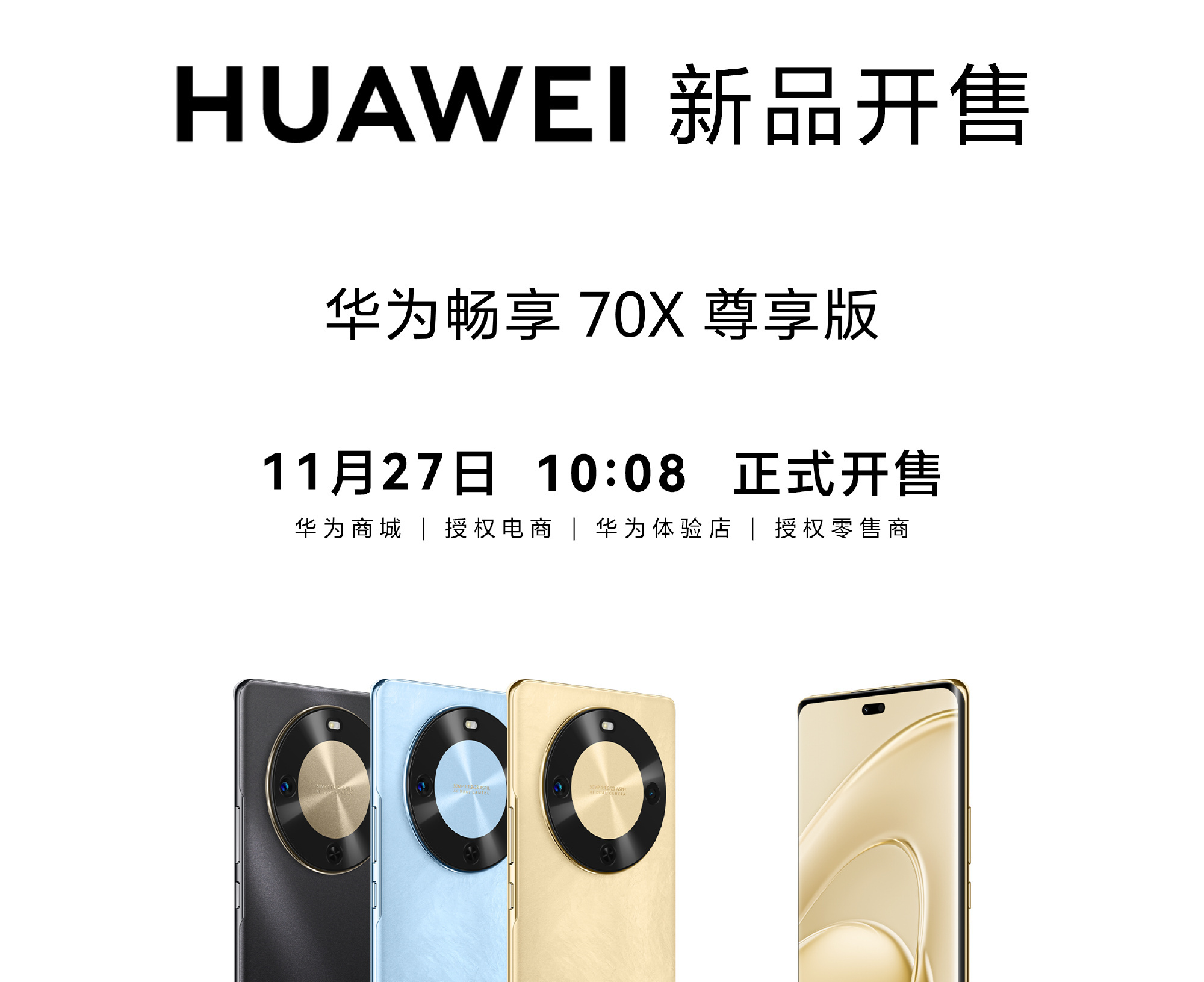 2025年11月27日,华为终端官宣,华为畅享70X尊享版,今日10点正式开售。