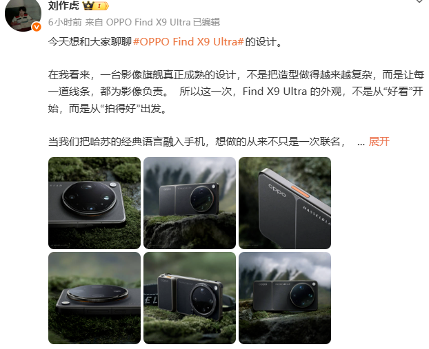 OPPO首席产品官刘作虎通过微博阐述了新一代影像旗舰Find X9 Ultra的设计理念。此次官宣的核心在于揭示,该机型的外观设计并非始于传统的“美观”考量,而是从“拍得好”这一根本目标出发。