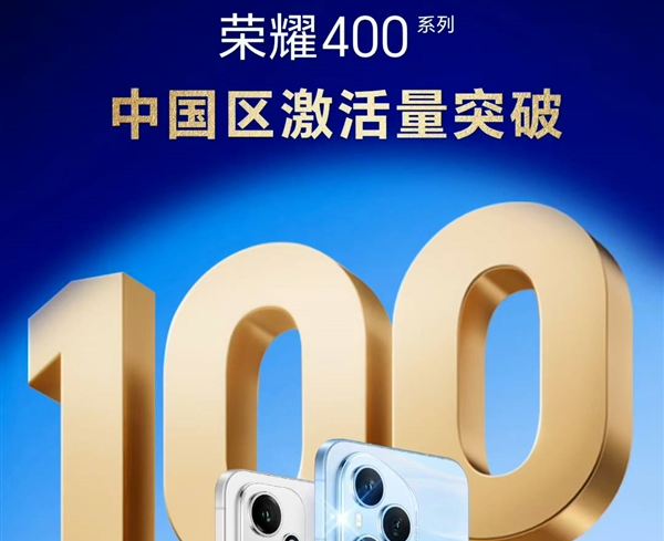 荣耀400系列中国区激活量已突破100万台,成为荣耀近三年来最快破百万的机型。