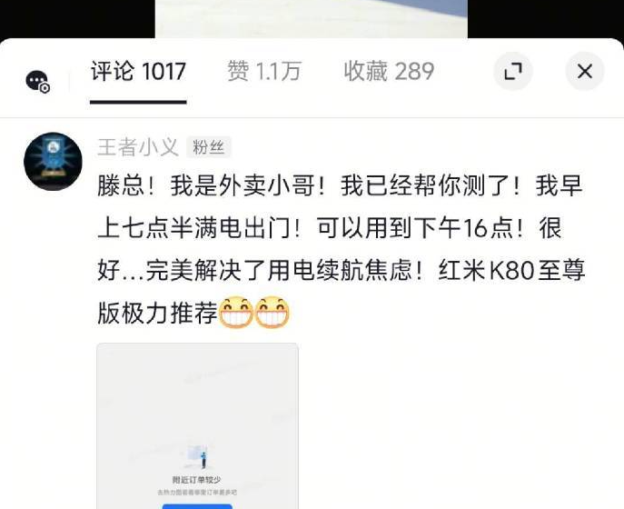 7月3日,小米中国区市场部总经理、REDMI品牌总经理王腾在社交媒体上转发了一位外卖小哥对于REDMI K80至尊版使用后的真实评价,他称,从早上七点半出门一直用到下午四点,并且全程开GPS且不黑屏。