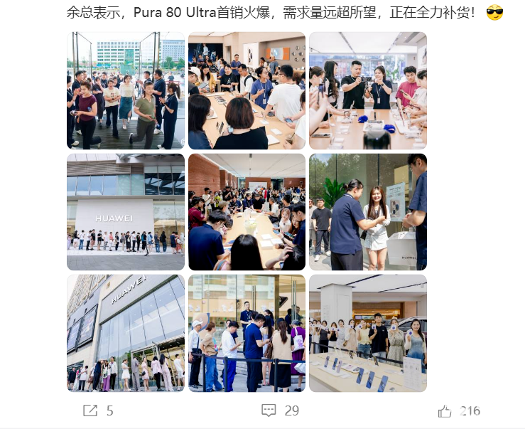 6月27日消息,华为最新旗舰产品Pura 80 Ultra开售后迅速被抢购一空,多个存储版本均出现供不应求的情况。华为线下门店人山人海,市场需求远超预期。